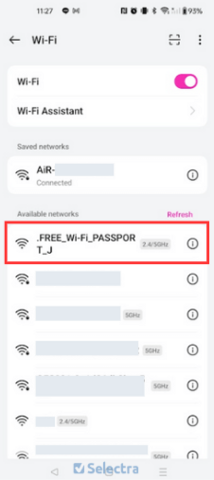 WiFi一覧からFREE Wi-Fi PASSPORTに接続