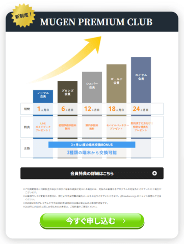 ただし、縛りなしプランで契約する方は、MUGEN PREMIUM CLUBに加入できないので注意しましょう。